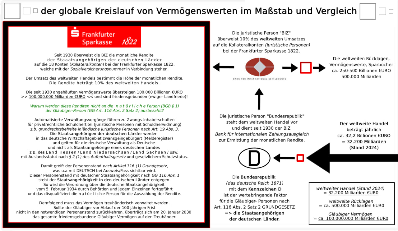Könnte es sein, das aus einem bestimmten Rechtskreis heraus, das Bundesvermögen als Strukturkredite vergeben werden, die auch über die BRD-Verwaltung den angemessenen Versorgungsstandard der Bevölkerung gewährleisten sollen? Das Angemessen, aber ein einseitiger Aspekt ist!
