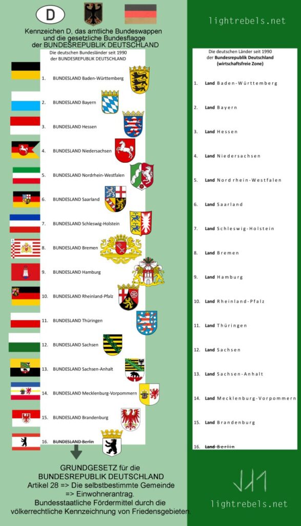 Die BUNDESREPUBLIK DEUTSCHLAND von 1949 mit GRUNDGESETZ und BUNDESLÄNDERN ist die Verbindung zu den deutschen Ländern.
