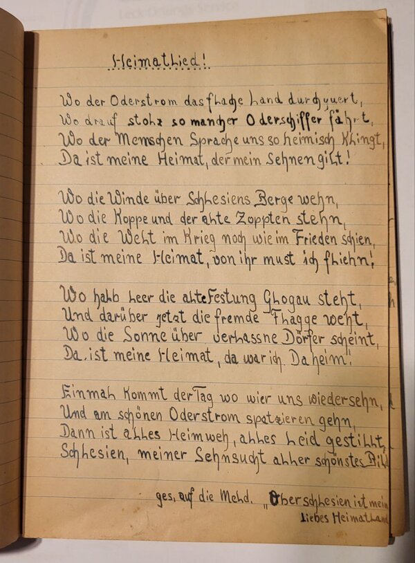 Einmal kommt der Tag, wo wir uns wiederseh´n, Und am schönen Oderstrom spazieren gehn, Dann ist alles Heimweh, alles Leid gestillt, Schlesien, meiner Sehnsucht aller schönstes Bild!