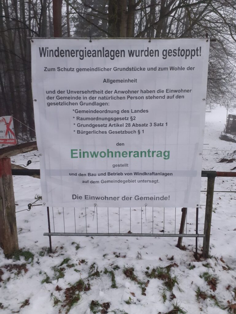 Der Einwohnerantrag mit dem der Bau und Betrieb auf dem Gemeindegebiet untersagt wurde, ist durch den Gemeinderat zur Kenntnisnahme an die Kreisverwaltung übermittelt worden.
